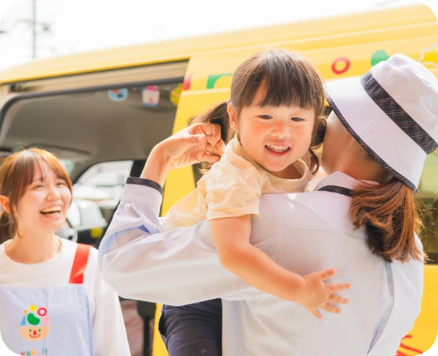 送迎バスがヤクルトステーションまで子どもたちを送ります。