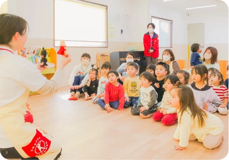 地域のみなさまの健康を心から願い、社会貢献活動の一環として、食育事業に取り組んでいます。乳幼児対象のプログラムでは、「おなか元気教室」と題し、管理栄養士資格を持つ職員が、おなかの中の良い菌・悪い菌のお話や、“元気うんち”のお話、おなか元気に過ごしていただくためのお約束をお伝えしています。この取り組みを通じて、お子さまが「おなかの健康」について知っていただける機会となることを願っています。