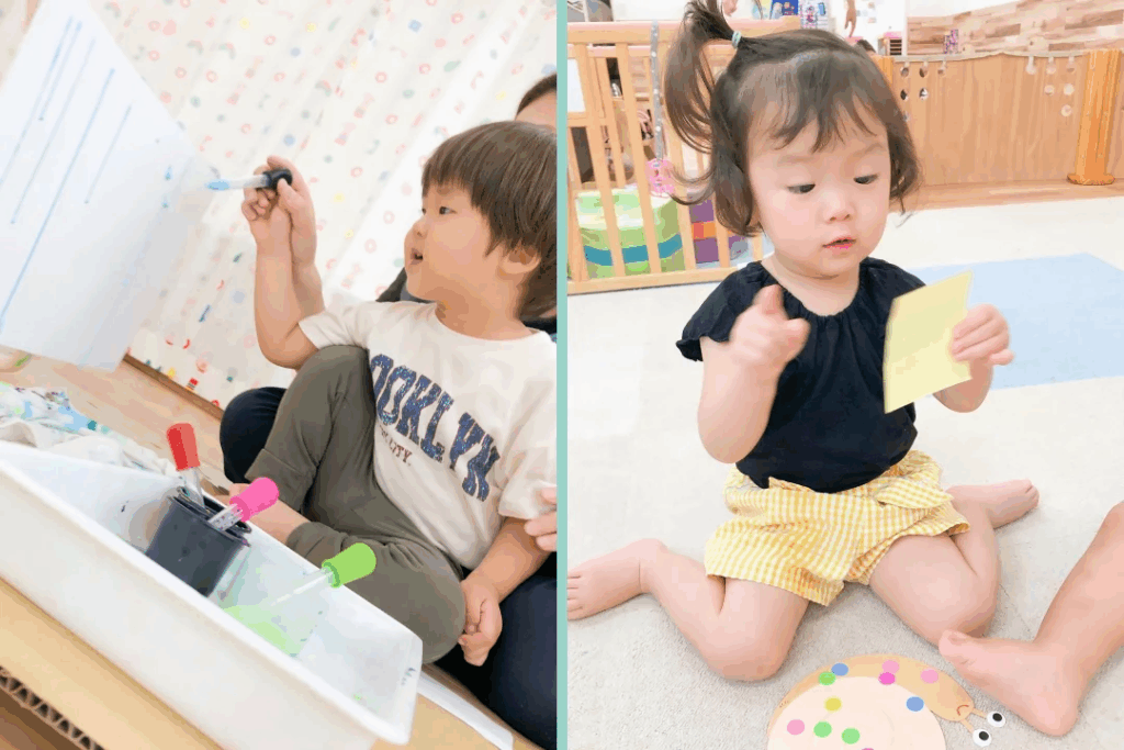 ヤクルトキッズスクール舞子かもめ保育園では、ひよこ組(0~1歳児)とうさぎ組(2歳児)に分かれて、それぞれ年齢に合わせた内容で製作活動を行いました。