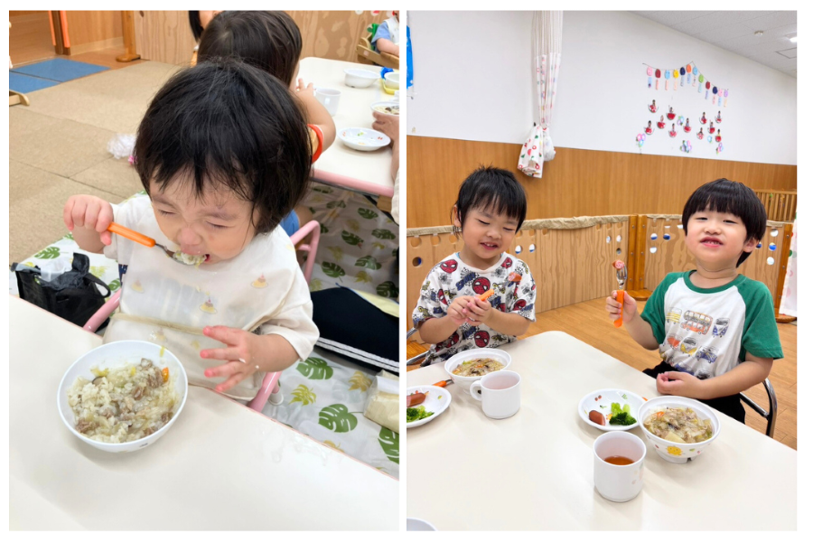 そして、キッズスクールでは園児たちが健やかに過ごせるよう、毎日栄養バランスのとれた給食を提供しています。今回は、9月の給食を紹介いたします。