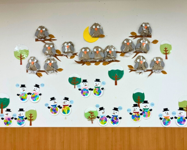 ▼フクロウと雪だるま(ひよこ組)