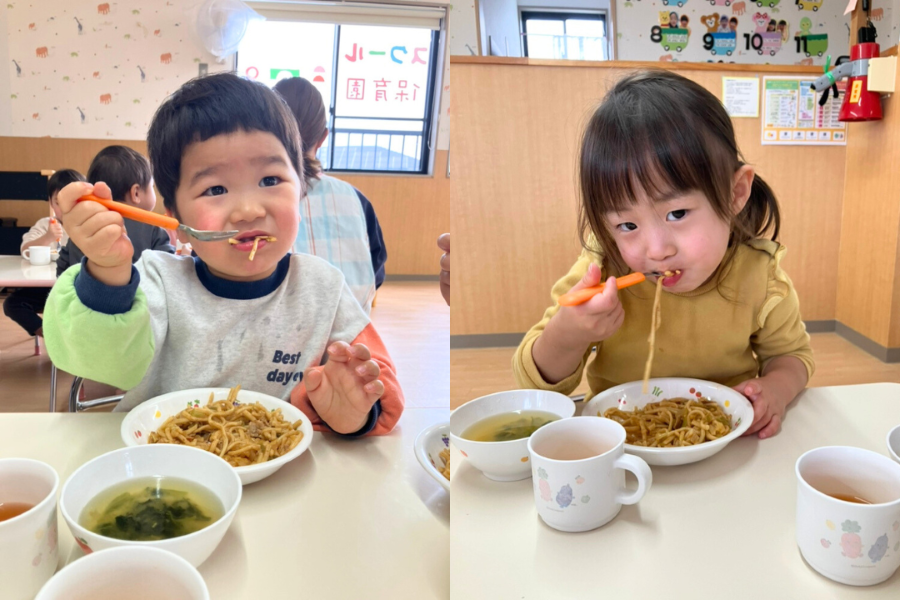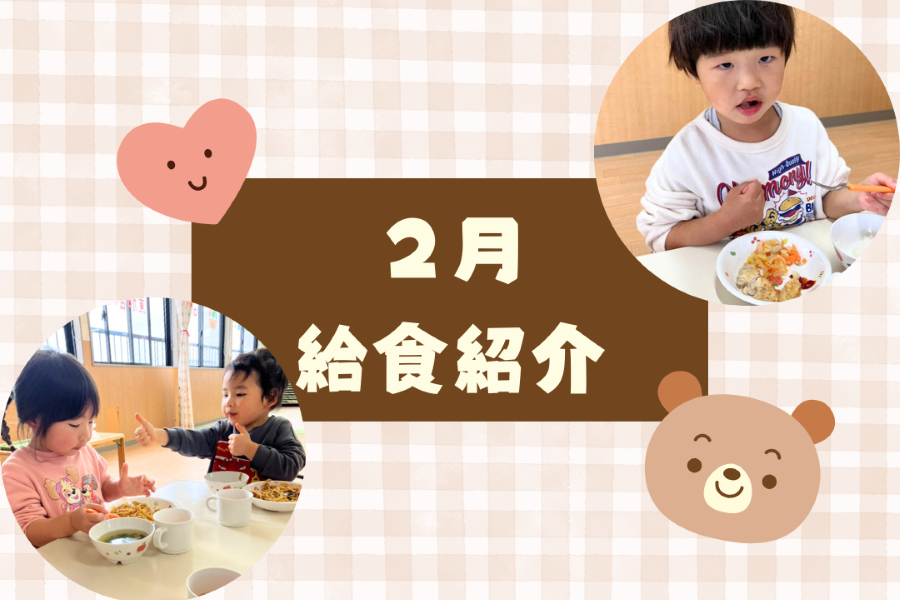 そして、キッズスクールでは園児たちが健やかに過ごせるよう、毎日栄養バランスのとれた給食を提供しています。今回は、2月の給食を紹介いたします♪